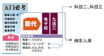 难点:中间不能停顿,彻底否定了目前电子桩考试中,原地打死方向及辨认吊杆与前挡玻璃标记的做法。此外考生需重新学习如何从后视镜观察边线。
