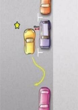 要记得保持自己的车与前车间距 60 厘米左右并调到平齐位置。