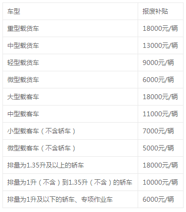 需要注意的是,具体的补贴标准可能因地区而异,最好以当地为准,例如,北京市规定的报废车补贴标准是:一般机动车每辆补助5000元,淘汰营运车辆每辆补助8000元。