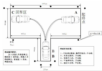 1、轻抬离合使车后移,控制好车速,看左后视镜,当右起点感应线出现在左后视镜位置时把转向盘右打死。