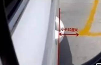 当车身与库角的距离大于30cm,(可能第一个点打晚了)此时方向盘不要动,右边是不会压线的,所以只要看左边后视镜就行,继续后向后倒车。预估能看到后库角时,说明还有救,否则已经没救了。