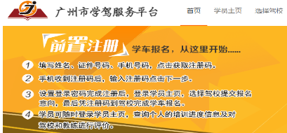广州市自2016年1月1日起,实行报名前注册制。学员学车须先通过“广州市学驾服务平台”注册基本信息后,通过手机获取注册码,再凭借注册码到驾校进行报名。只有经学驾平台认证的有资质的正规驾校才能凭借学员的注册码获取学员资料,招收新学员。