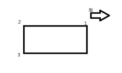 4、当库对角点3出现在左后视镜后,再过一点,让车尾与3点相距50cm,开始向左打满轮(为了确保准确无误,最好是能伸头来观察,看左轮是否压库边线了)。打轮速度要与离合器所控制的车速吻合,即车快轮块,车慢轮慢,如果两者不相匹配,会造成车身偏左或偏右。