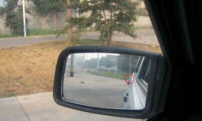 1.看右后视镜,可以看到右车身前后门拉手和库角顶点1,这时挂倒档直线倒车。
