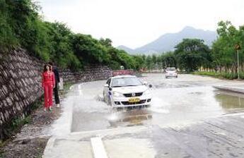 5、在通过有积水的地方或者立交桥下,有水溢满的路面时,要挂低速档,稳住油门,低速前行,一气通过,千万不能中途停车、换挡、或者急转方向,不然导致车辆熄火就不合格了。