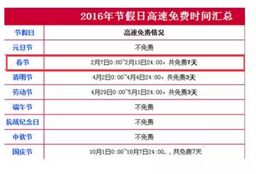 关于2016年高速公路免费通行的节日介绍大概就是这些了,有想要出游的车主可以特别注意一下,高速收费关闭和开启的时间。