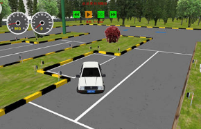 挂上一档要出库,车头触线左打足。