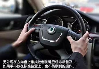正确的方向盘握法是左手9点,右手3点,拇指轻轻搭在方向盘内侧,多数车型在这里都设计了凹槽,拇指接触到这个凹槽便是。