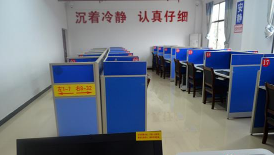 经过技术人员,近半个月的前期施工、设备安装调试等一系列筹备建设。目前,已经进入待验收阶段。共分为考场区和候考室,实现了考试、候考隔离,有32个考位和40余个候考位,面积达100余平方米,并安装设置了监控设备、手机屏蔽仪等高新技术设备,以确保考试公开、公平、公正。同时,在侯考区还配备了电子显示屏、空调、沙发、饮水机等设施,让候考员有水喝、有凳坐。