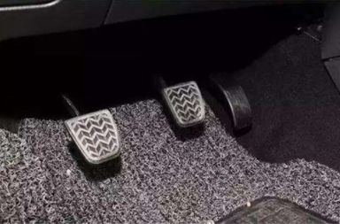 自动档只有两个踏板,由左至右依次是刹车踏板、油门踏板。只用右脚控制。