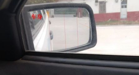 如果有个子较高的学员在看后视镜的时候,稍微低下头也是可以很清楚地看到地面的标线和点位的。若是觉得低头不舒服,调整时可以稍微调高一点,保证能看到地面标线即可。