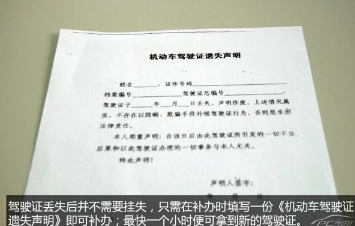 正如前面所说,驾驶证丢失到底需不需要挂失?问题的正确答案是:驾驶证丢了之后并不需要挂失,只需及时去车管所申请补办即可;不过申请补办时需要填写一份机动车驾驶证遗失书面声明,证明你的驾驶证确实是已经丢了的,并“发誓”以后由丢失的驾驶证所引发的一切不当后果与你无关。