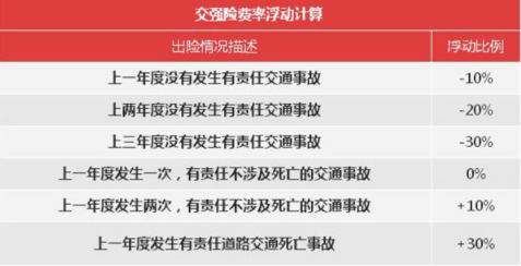 交强险也会被费改影响么?答案是肯定的,浮动计算费率如下表: