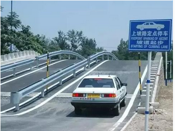 2、坡道起步必须在30秒内完成,首先开启左转向灯挂一档,慢抬离合至车辆有抖动出现,离合稳住不动加油至发动机转速达到1500转时油门稳住不动,微抬离合发动机转速下降到1000转左右时,(发动机声音变小时)放开手制动(不能过快缓慢放下防止溜车)。