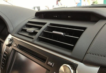 内循环的清洗比较简单,不过也是要先着车,调好空调相关按钮:关闭A/C开关,内循环、风量3档、风向吹身或玻璃、温度正常( 24℃左右)。然后找准副驾驶室空调内循环进风口处。