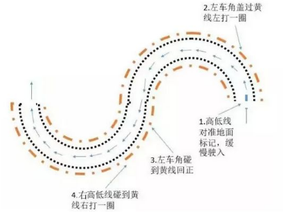 (1)对于曲线行驶,首先我们要了解下曲线行驶的路线图,要在心里面画出一个曲线行驶图,只有这样,才能更好进行的下一步。