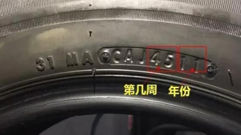 第二个生产日期就在轮胎上面,后面两个数字代表它的年份,前面两个数代表它的周数,车上的四个轮胎基本上生产日期是相对一致的。