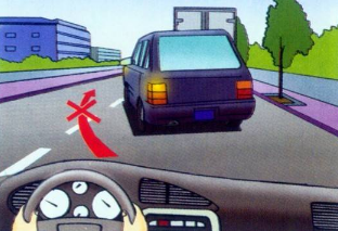 2、超车完成后,开启右转向灯,在不影响被超车辆正常行驶的前提下,缓转转向盘驶回原车道,随即关闭转向灯。