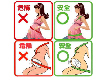 1. 孕妇使用安全带时,肩带不能横穿子宫隆起部位,而应当从头侧部通过胸部到达侧腹部,如果勒得太紧,可适当调节肩带的长度。但安全带也不宜过松,否则无法起到保护的作用,孕妇可通过调节坐椅的倾斜度,让安全带始终贴在自己的身上。