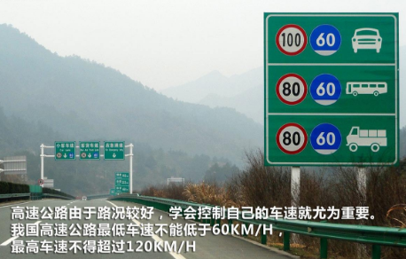 高速公路限速新规定中,高速公路最低限速不得低于每小时60公里,最高车速不得超过每小时120公里。在高速公路上行使时候要注意车速,切莫过快。