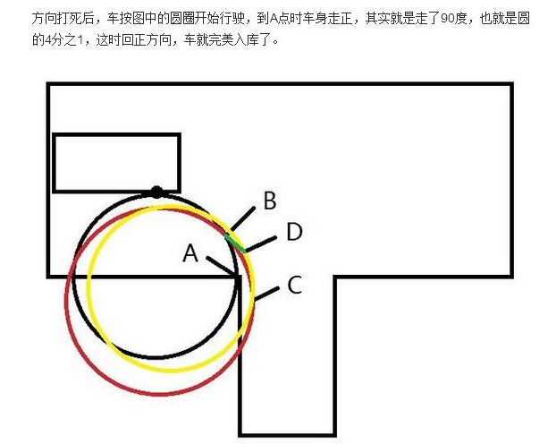 我的经验是:1.反倒:车辆在停止线半离合状态慢慢开始后到时,观察右后三角窗前立柱前的窗花,当窗花接触库右边线(可适当提前)时,立即匀速向右打死方向,然后眼睛移到左后视镜,注意观察车身与库左前角(距离小于20-30公分适当回些方向,距离大些则不用管),当库左边线完全出现时,立即回正方向,当库前线在左后视镜下沿时停车即可。
