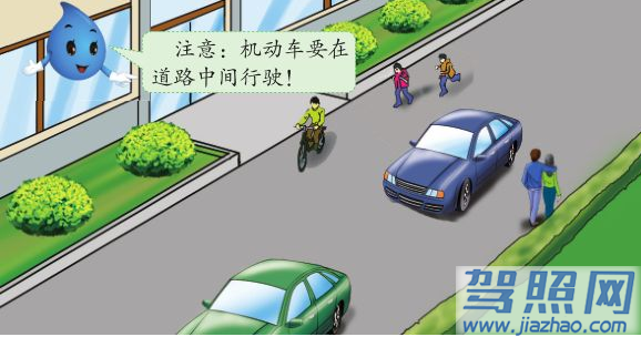 道路没有划分机动车道、非机动车道和行人道的,机动车在道路中间通行,非机动车和行人在道路两侧通行。