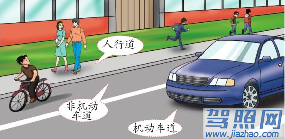 道路划分为机动车道、非机动车道和行人道的,机动车、非机动车、行人实行分道通行。