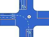 9. 如图所示中心圈,用以区分车辆大、小转弯,及交叉路口车辆左右转弯的指示,车辆不得压线行驶。