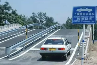 4、要注意车辆速度的控制。主要通过踩离合的高低,必要时可适当稍踩刹车,但不得踩到停车,“速度慢、方向快”是要点。