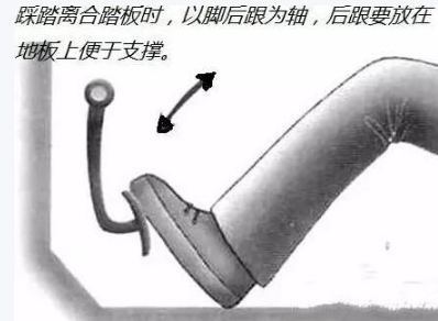 首先脚掌踩在离合器踏板上,脚后跟贴在地面上,作为支撑点。当离合器踩到最低点时,膝盖要保持微曲。