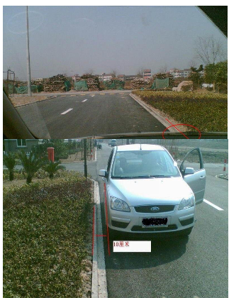 当右雨刮器结点和路边重合时,方向稍向左拉,就可以达到离路边10厘米靠边停车的效果