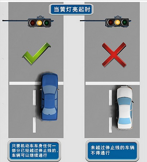 如果黄灯亮起时,我们距离黄灯停车线较远,此时应当保持安全的前提下尽可能的迅速制动。如果我们离停止线很近,完全无法将车停下来,应当通过路口时将车速降下来,并且尽可能的将车停住。