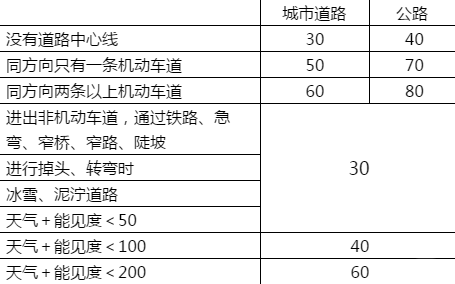 1.最低速度:[同向]两道100,60;三道110,90,60;四道110,90,90,60