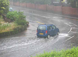 当车过有积水的街道时,要留意水位深度,如水深超过排气筒,便很容易令车辆死火。如必须经过水浸的地方,而水深约半个轮胎,便要先用较低挡行驶,提高引擎转数,稳定油门,保持行车速度涉水而过,事后要留意脚掣,因经过水浸后,刹车效能便会减弱,如属鼓型者,便要拖手掣,将着力皮弄干,以防手制失灵。跟车也要较平时稍为远一些,以防前面车辆急刹车而造成意外。