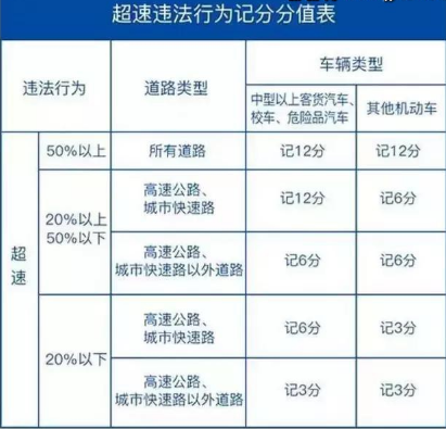 开车超速,扣分标准还是挺严格的。扣分都是大分值地扣:12分、6分、3分。高哥特地整理了一份超速扣分表,大家看看: