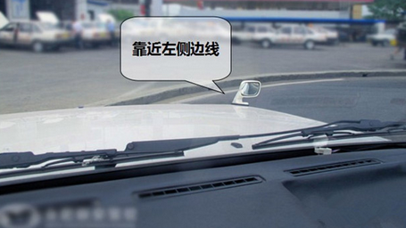3、左打一圈后,始终要观察车头左前角压住边线行驶,如果有偏离,方向盘控制在90度之间修正,压住边线行驶即可。