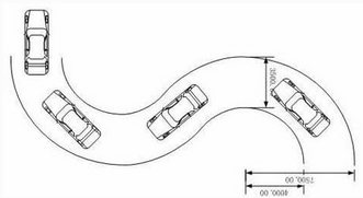 s弯,即曲线行驶。曲线行驶的场地,看上去就是一个躺在地上的字母S。根据《小车考试项目尺寸标准》,C1驾照曲线行驶场地的圆弧半径为7.5米。车辆需从S型车道的一端进入后,不压线从另一端开出。