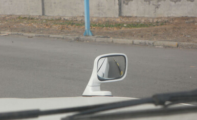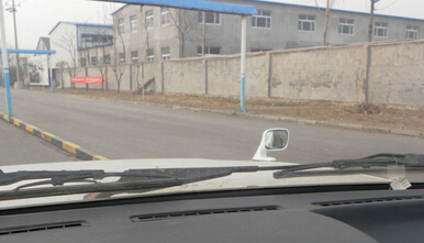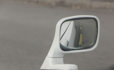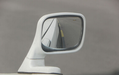 二、这时看车头的右边小后视镜,能清楚的看到车身与边线在接近。如上图。