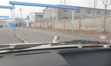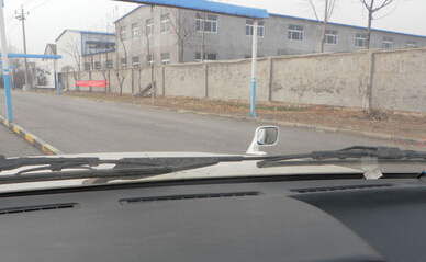 四、向左大角度打方向后,从小镜子中看到车身与边线成一个上窄下宽的夹角时,如上图。这时就将方向回正,然后慢慢停车。至此三把轮停车法操作结束,车正轮正。