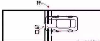 4、入库后,当车头盖左边角刚与d点平行时,刹车停车。