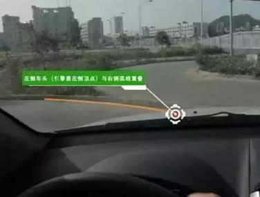 前行中,注意引擎盖和左侧弧线对齐的时候,开始往右打一圈方向。