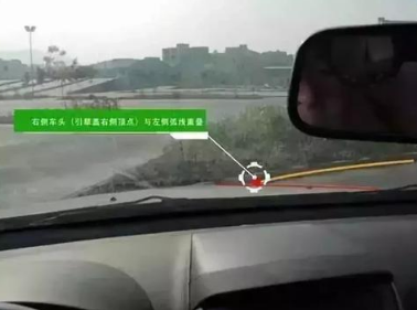 当车头中心碰到右边路边线的时候,方向盘要迅速向左边打半圈,让车头的左边角压着路边线走。