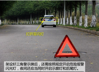 正确摆法:要将三角警示牌摆放至车辆所停放的车道中间