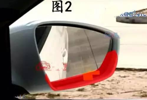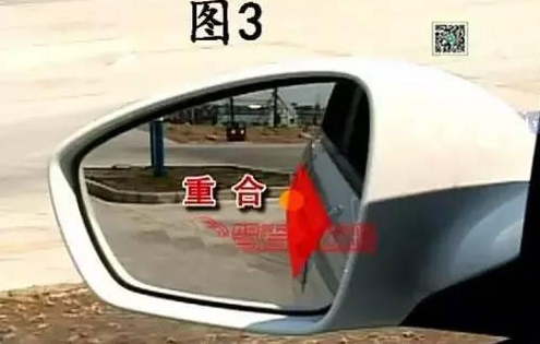 2.当倒至看左侧的后视镜,观察到右侧后视镜下边缘和停车控制线重合(如图1)或者库角点A与右后镜下沿重合时(如图2),马上快速向右打满轮,压稳离合,观察左后视镜当在车子中看到C点的时候(在车子里看到的状况如图3)。
