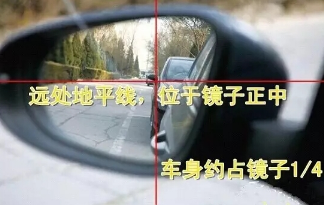 ②由于镜距差的原因,在两边间距相同的情况下,左后视镜【3、4个手指位】比右后视镜【2个手指位】宽,且右后视镜中感觉车身线与黄线不平行,而左后视镜却平行;