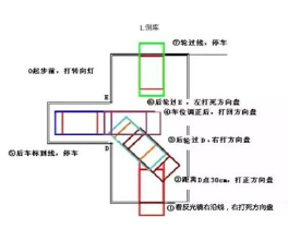 这项纯考眼力和手法。要点:后轮与库前边线齐平时,向右打一圈半,待左后视镜内出现右库角时迅速回正。继续观察,左后轮压左侧库边线时,迅速向左打死。感觉车身摆正了,即可停车。为什么一开始不打死,是因为打死的话,车头会出左边线。