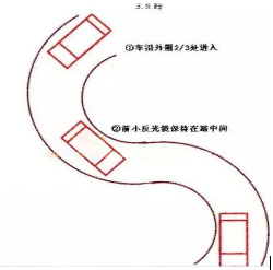 这项的要点是车头压线(目测)。向左拐,要目测使车头左侧压右边线。向右拐,要目测使车头中部压左边线。这个与你的坐高有关,不一定必须是车头左侧和车头中部,只是个大概范围。