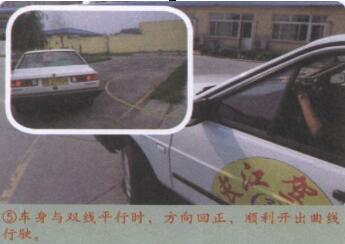 5、车身与双线平行时,方向回正,顺利开出曲线行驶。