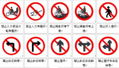 2、禁令标志的颜色,除个别标志外,为白底,红圈,红杠,黑图形,图形压杠。