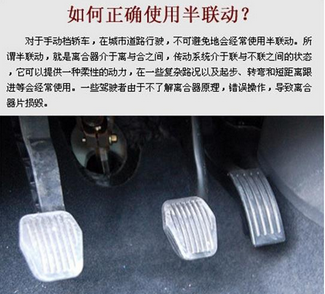 (3)凭脚感。当发动机的声音开始变化,车辆发生轻徽震动的同时,离合器踏板即会有顶脚的感觉产生,这时的离合器正处在半联动状态。